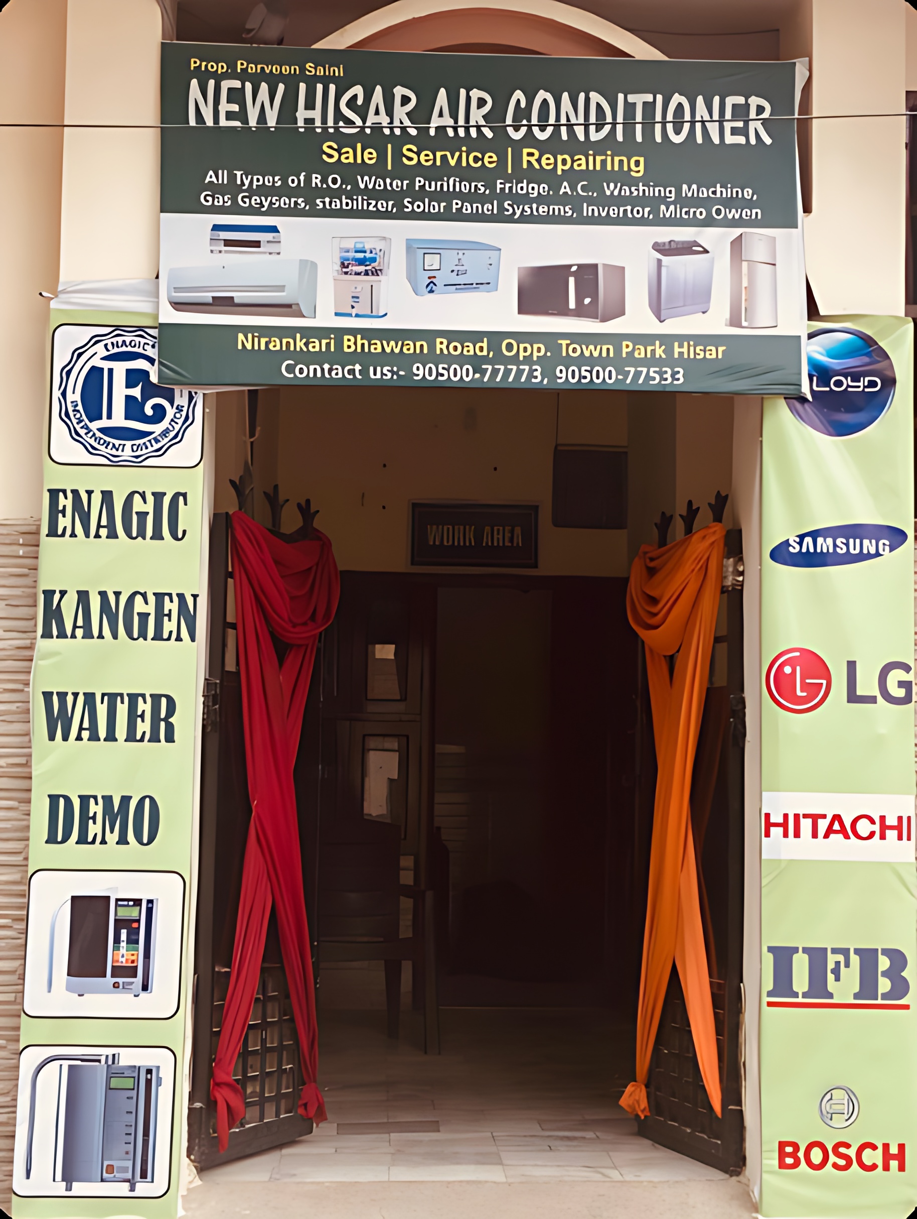 New Hisar Air Conditioner, we specialize in AC Sales, Servicing, and Repairs for all major brands including LG, Daikin, Voltas, Samsung, IFB, Godrej, Blue Star, and Haier. Whether you need a new air conditioner, regular maintenance, or expert repair, we deliver fast, reliable, and affordable solutions right at your doorstep.